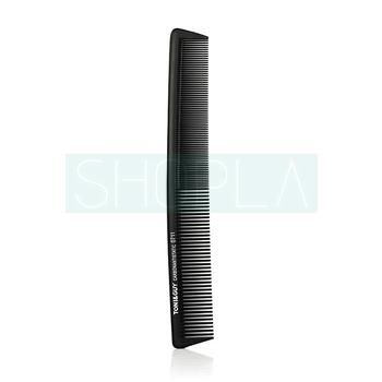 Toni&Guy 0711 to profesjonalny, karbonowy grzebień przeznaczony do strzyżenia włosów. Posiada dwa rodzaje delikatnie zakończonych ząbków. Umożliwia zarówno dokładne strzyżenie i cieniowanie pasm, jak i ich stylizację. Wykonany jest z materiału odpornego na czynniki chemiczne, wysoką temperaturę, a także ładunki elektryczne, dzięki czemu nie elektryzuje włosów.